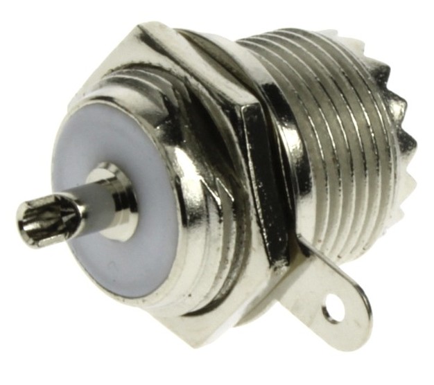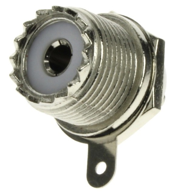 Konektor UHF samice (SO239) na panel s maticí, teflonová izolace.